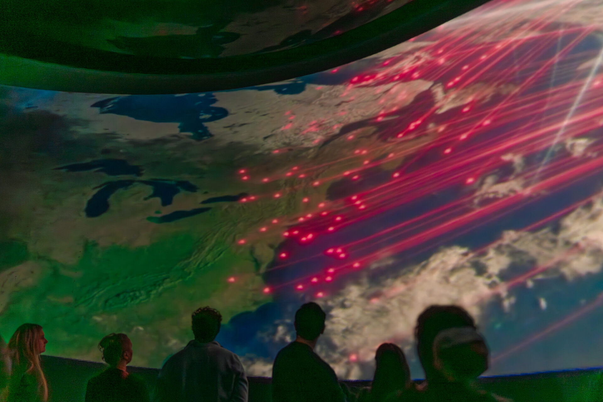 The OpenSpace system leverages advanced projection and interaction technologies to create a dynamic environment that responds to sound and movement. The MASK Consortium team worked with Micah Acinapura to map navigation controls to MIDI so the visualizations could react to music or be manipulated rhythmically in real time.