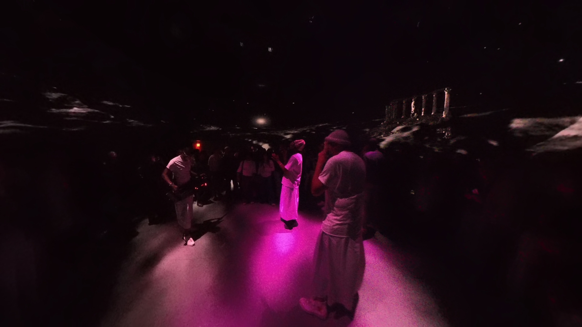 Beckoned by Sun GuideUs, the audience traveled up the stairs deeper into the cavernous space and into the next hallway— a transitional corridor between earthly crisis and cosmic departure.